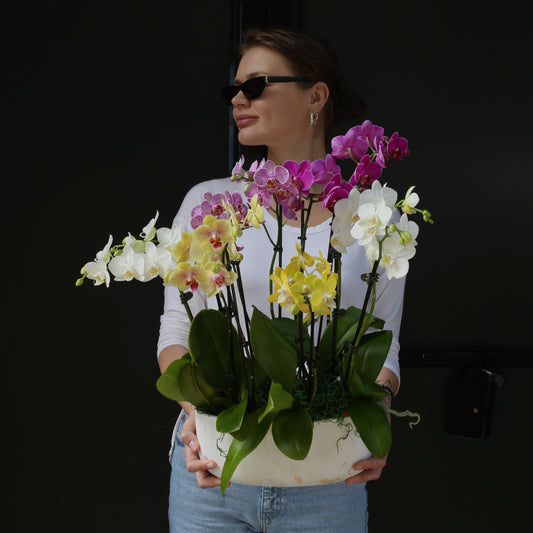 Our orchid collection includes orchid bouquets, orchid arrangements, and orchid plants prepared by our florists in Los Angeles. These designs feature premium orchid stems arranged with complementary flowers or presented as elegant orchid plants in decorative containers.