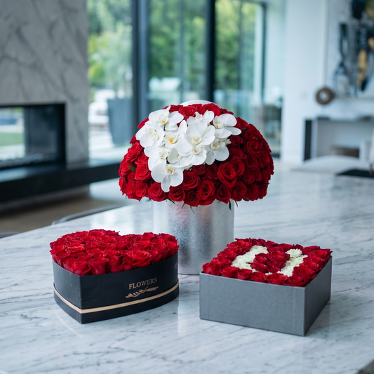Roses in a box are arranged tightly to create a full, even shape that holds during delivery. Unlike a traditional bouquet, the stems are cut to the same length and placed close together so the arrangement stays in place and looks the same on arrival. This type of boxed rose arrangement is often used for corporate gifts, anniversaries, and modern interiors. Order roses in a box with same day flower delivery in Los Angeles, available in red, pink, or white and other colors