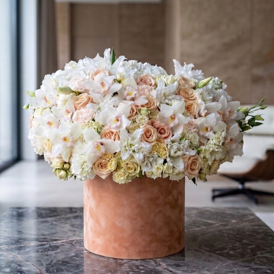 A luxury presentation designed to impress. Our florists carefully layer each bloom for maximum visual impact, creating an arrangement that looks stunning from every angle.